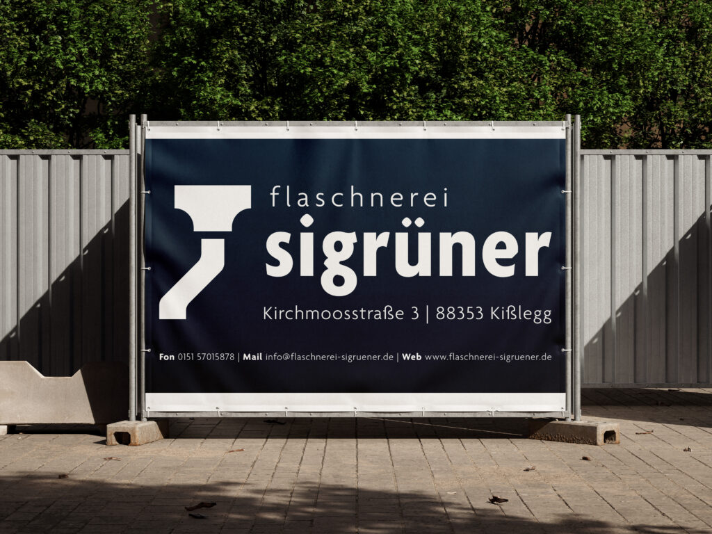 Flaschnerei Sigrüner Für die Flaschnerei Sigrüner entstand ein klares, handwerklich geprägtes Erscheinungsbild – mit Logo, Geschäftsausstattung, Flyern, Fahrzeug- und Eingangsbeklebung, Bauzaunbanner sowie individuell gestalteten Stundenzetteln. zurück