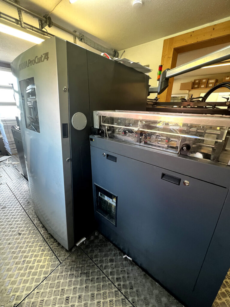 Unsere vollautomatische Rill-, Perforier- und Stanzmaschine ist perfekt für kleine und mittlere Auflagen.